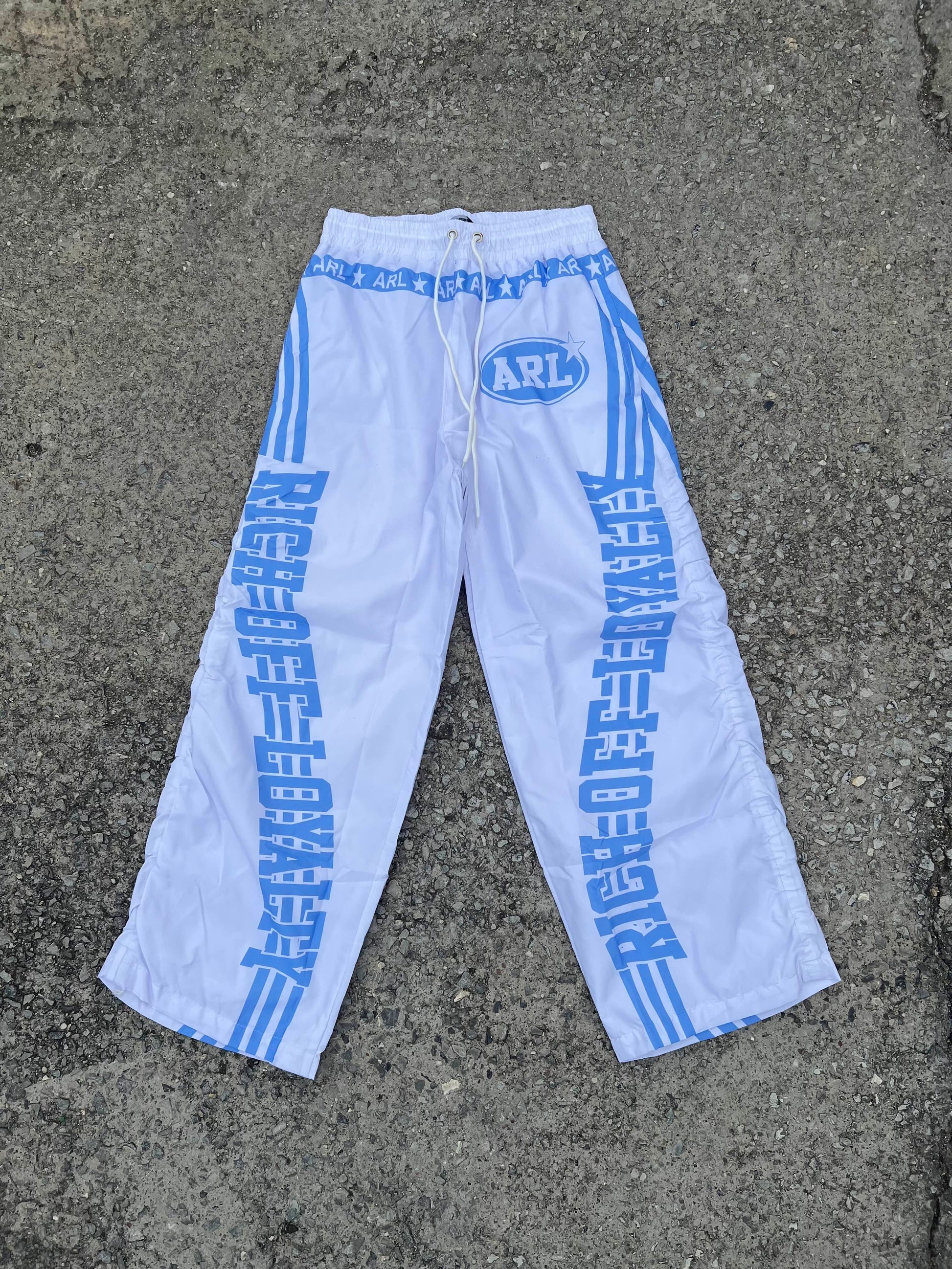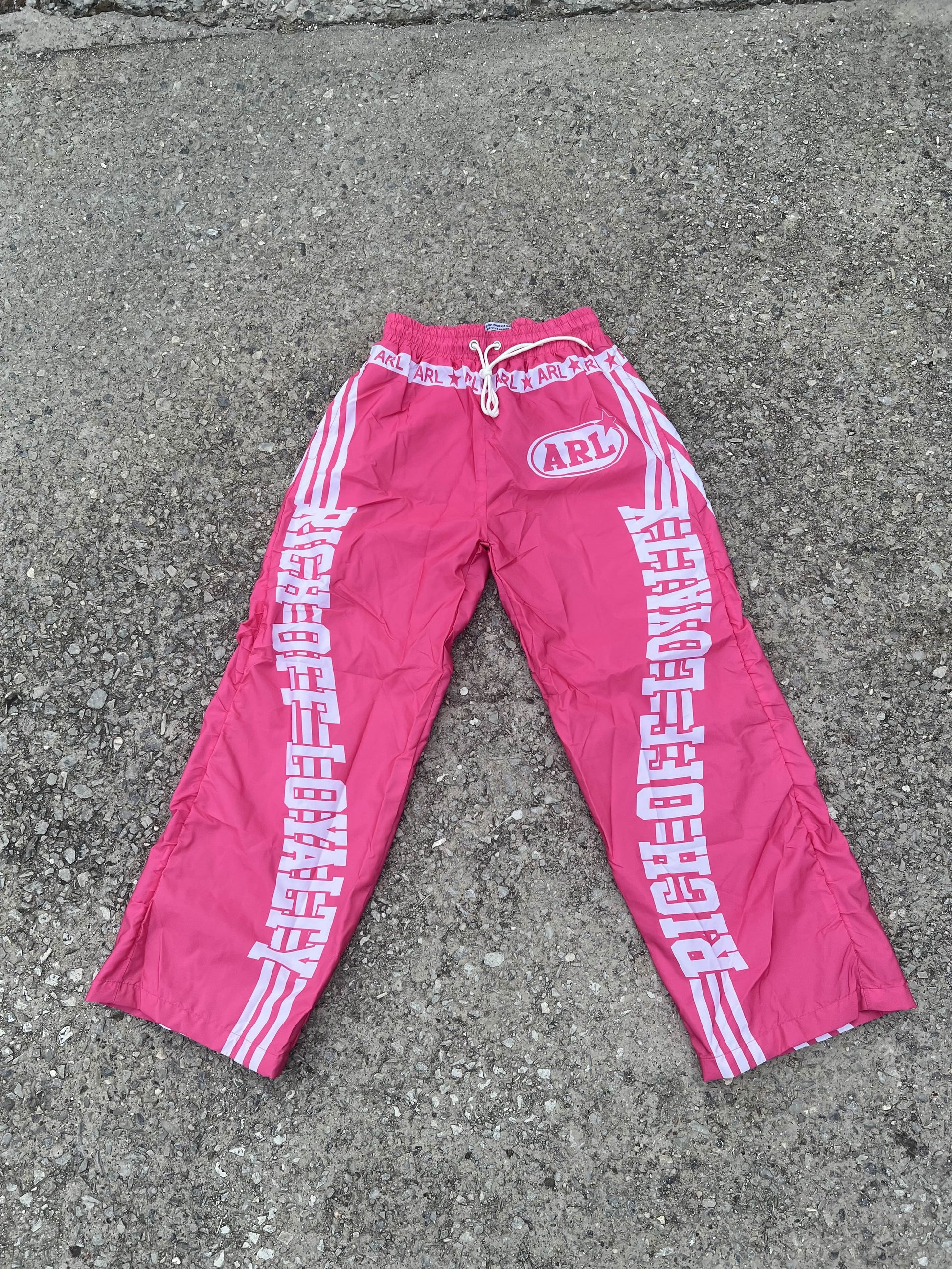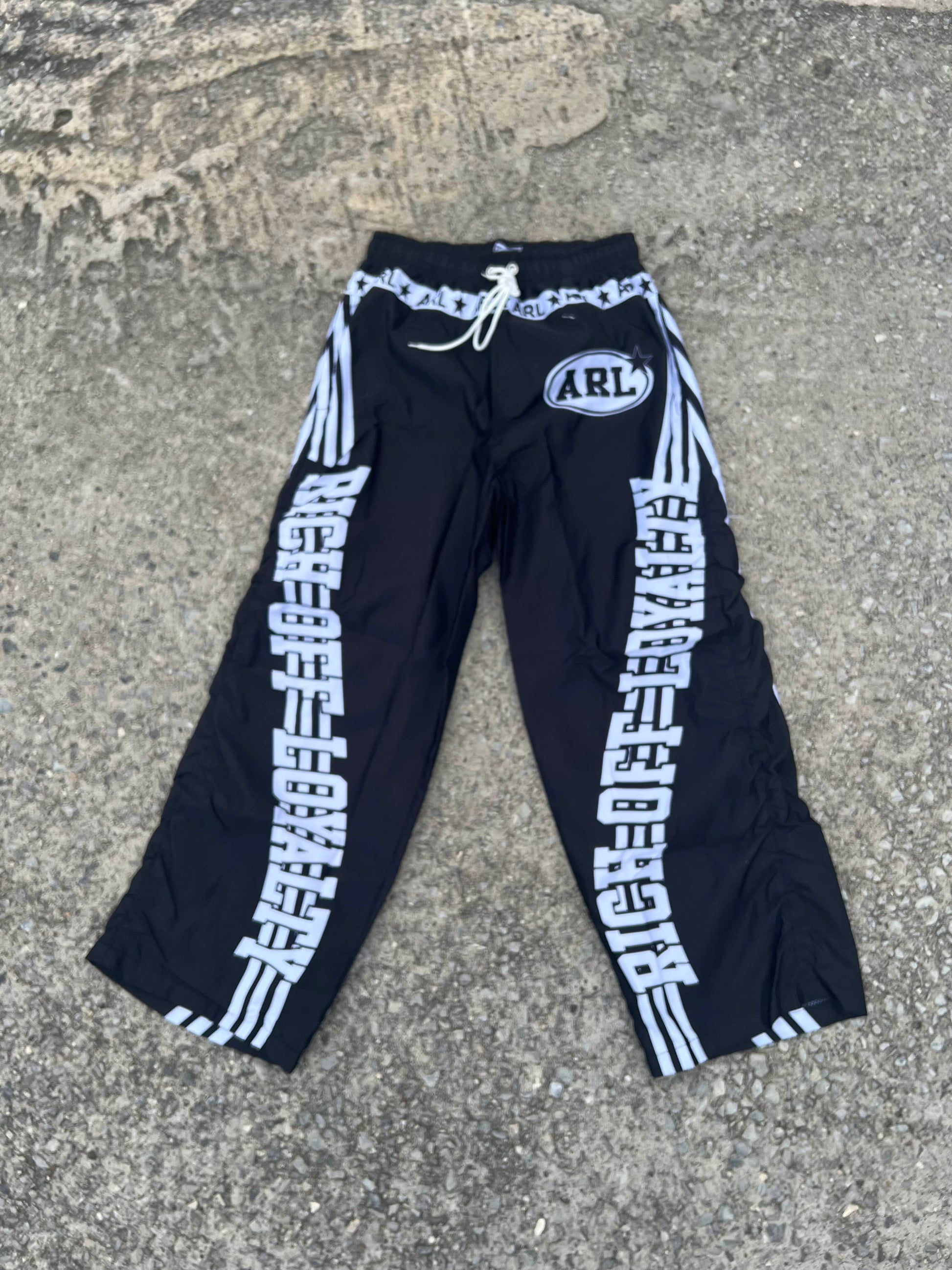 Available Now: Elevate your wardrobe with these premium nylon track pants. Shop the ARL streetwear collection and show your loyalty in style!